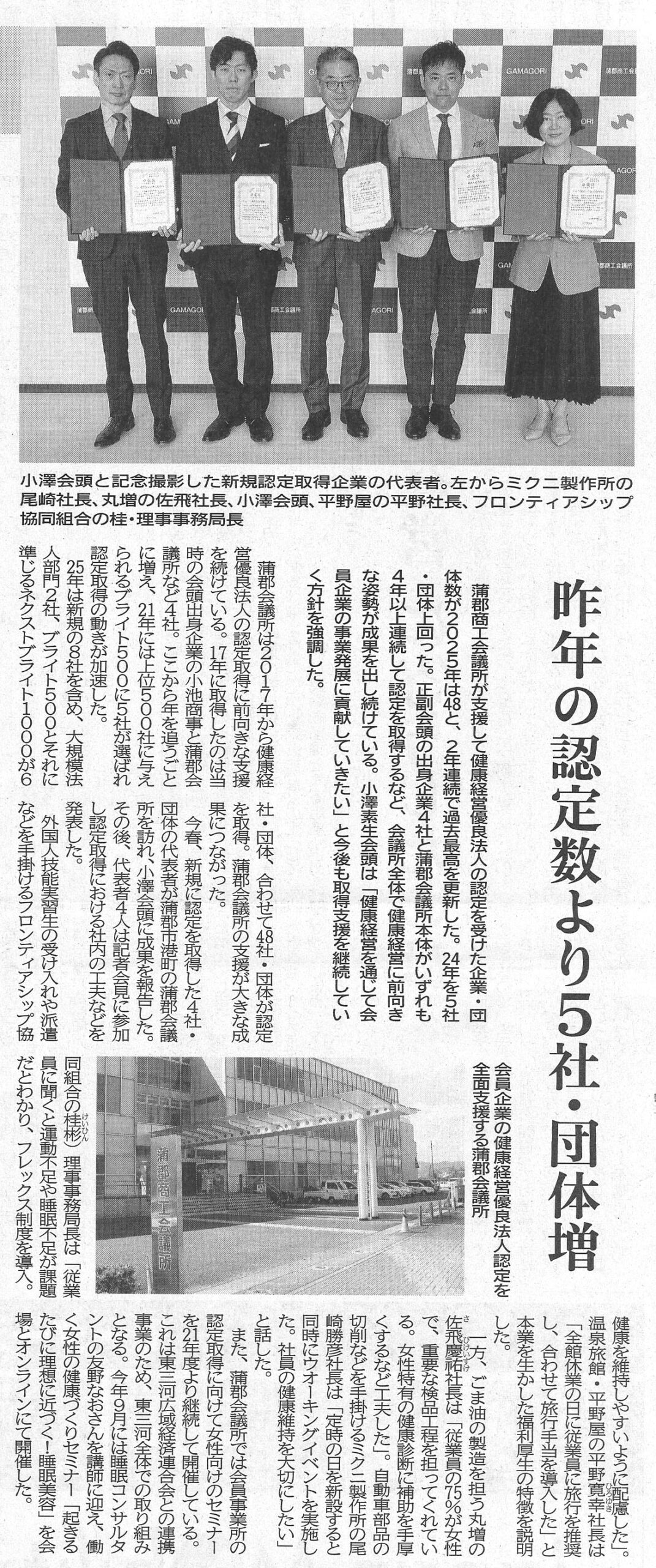 中部経済新聞 蒲郡市健康経営特集に山八商事が掲載されました